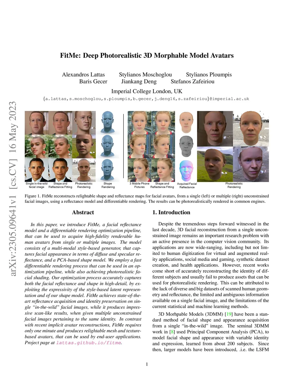 In this paper, we introduce FitMe, a facial reflectance model and a differentiable rendering optimization pipeline, that can be used to acquire high-fidelity renderable human avatars from single or multiple images. The model consists of a multi-modal style-based generator, that captures facial appearance in terms of diffuse and specular reflectance, and a PCA-based shape model. We employ a fast differentiable rendering process that can be used in an optimization pipeline, while also achieving photorealistic facial shading. Our optimization process accurately captures both the facial reflectance and shape in high-detail, by exploiting the expressivity of the style-based latent representation and of our shape model. FitMe achieves state-of-the-art reflectance acquisition and identity preservation on single "in-the-wild" facial images, while it produces impressive scan-like results, when given multiple unconstrained facial images pertaining to the same identity. In contrast with recent implicit avatar reconstructions, FitMe requires only one minute and produces relightable mesh and texture-based avatars, that can be used by end-user applications.