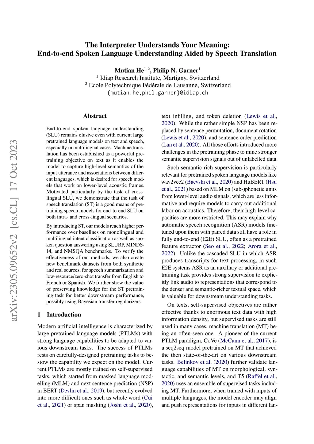 The Interpreter Understands Your Meaning: End-to-end Spoken Language