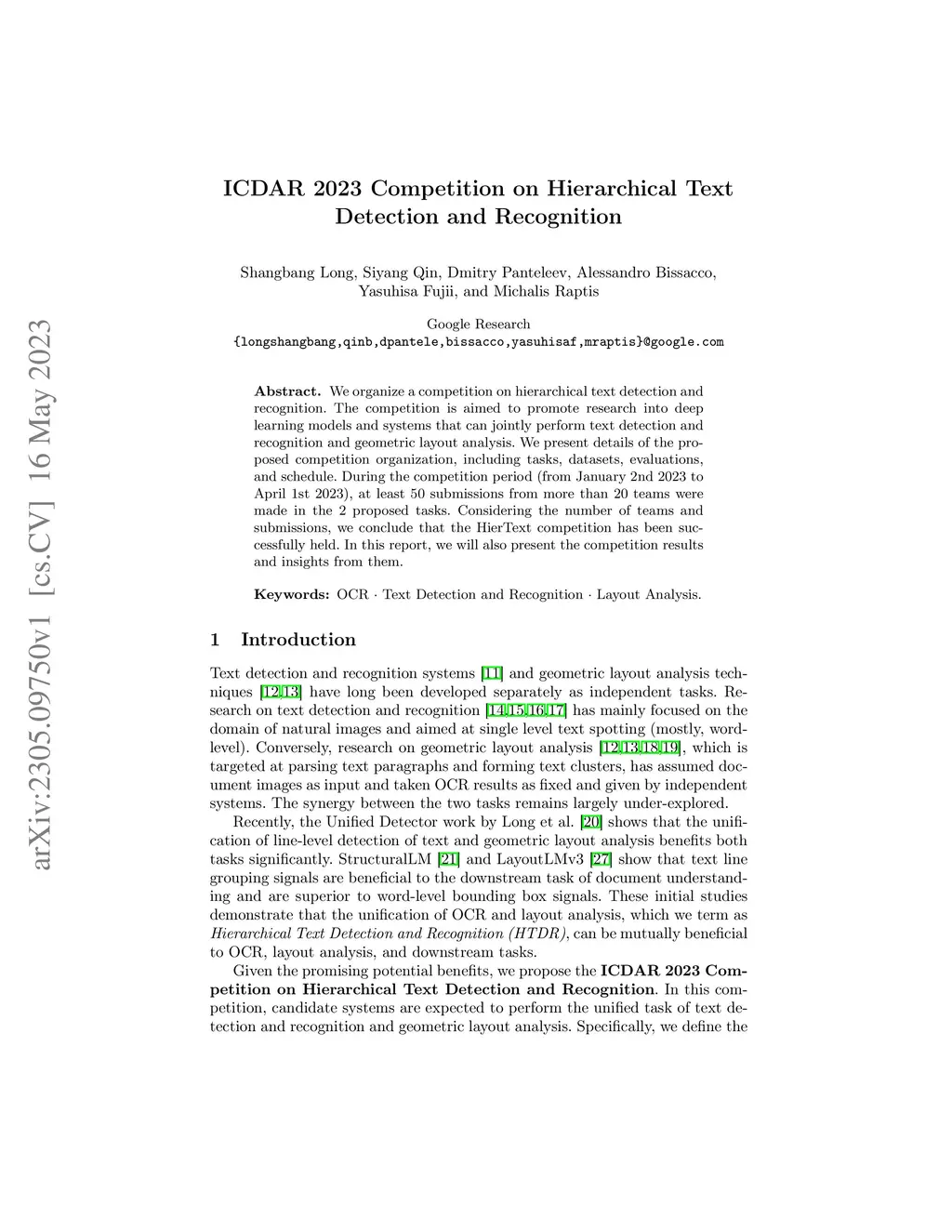 IEEE International Conference on Document Analysis and Recognition (ICDAR), 2023