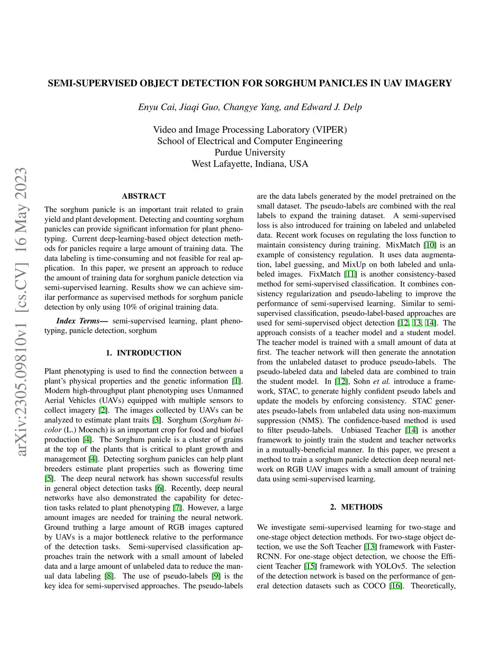 Semi-Supervised Object Detection for Sorghum Panicles in UAV Imagery