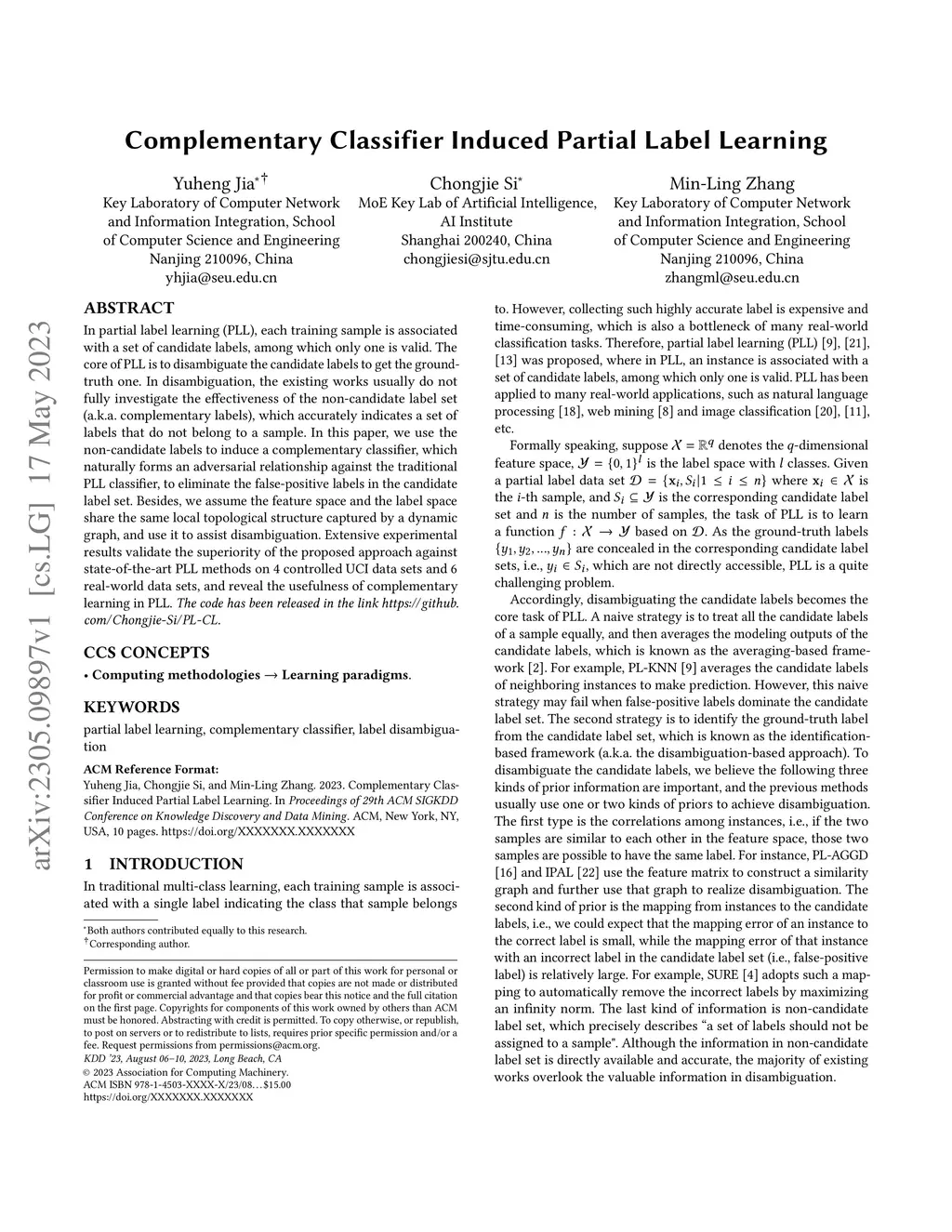 Complementary Classifier Induced Partial Label Learning