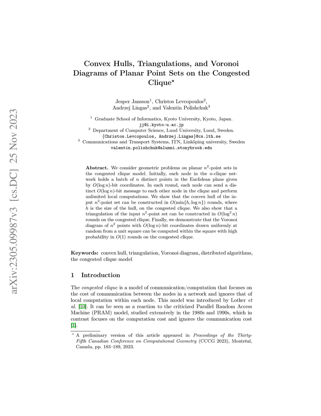Convex Hulls, Triangulations, and Voronoi Diagrams of Planar Point Sets