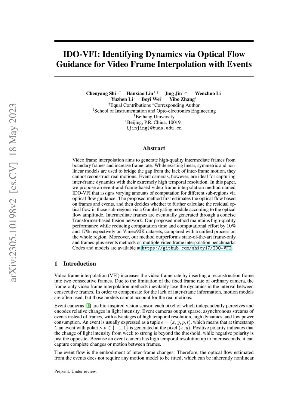 IDO-VFI: Identifying Dynamics via Optical Flow Guidance for Video Frame