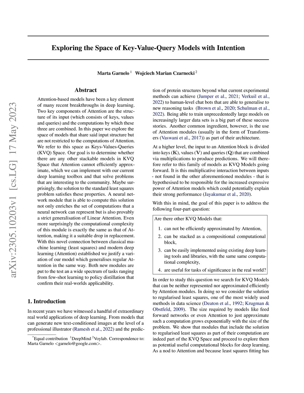 Attention-based models have been a key element of many recent breakthroughs in deep learning. Two key components of Attention are the structure of its input (which consists of keys, values and queries) and the computations by which these three are combined. In this paper we explore the space of models that share said input structure but are not restricted to the computations of Attention. We refer to this space as Keys-Values-Queries (KVQ) Space. Our goal is to determine whether there are any other stackable models in KVQ Space that Attention cannot efficiently approximate, which we can implement with our current deep learning toolbox and that solve problems that are interesting to the community. Maybe surprisingly, the solution to the standard least squares problem satisfies these properties. A neural network module that is able to compute this solution not only enriches the set of computations that a neural network can represent but is also provably a strict generalisation of Linear Attention. Even more surprisingly the computational complexity of this module is exactly the same as that of Attention, making it a suitable drop in replacement. With this novel connection between classical machine learning (least squares) and modern deep learning (Attention) established we justify a variation of our model which generalises regular Attention in the same way. Both new modules are put to the test an a wide spectrum of tasks ranging from few-shot learning to policy distillation that confirm their real-worlds applicability.