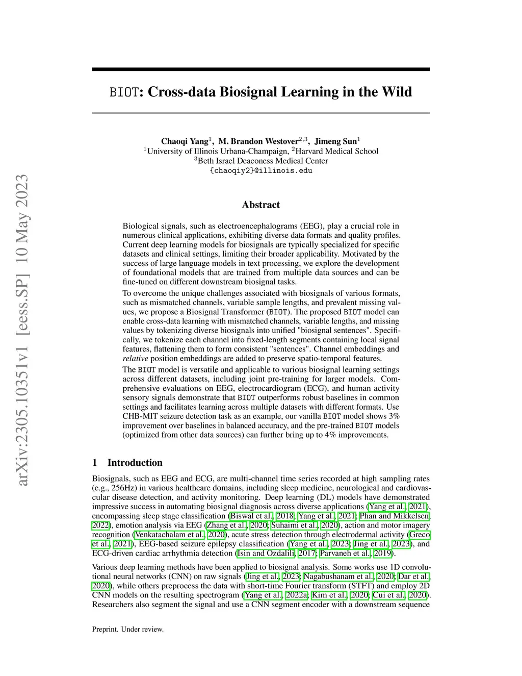 BIOT: Cross-data Biosignal Learning in the Wild