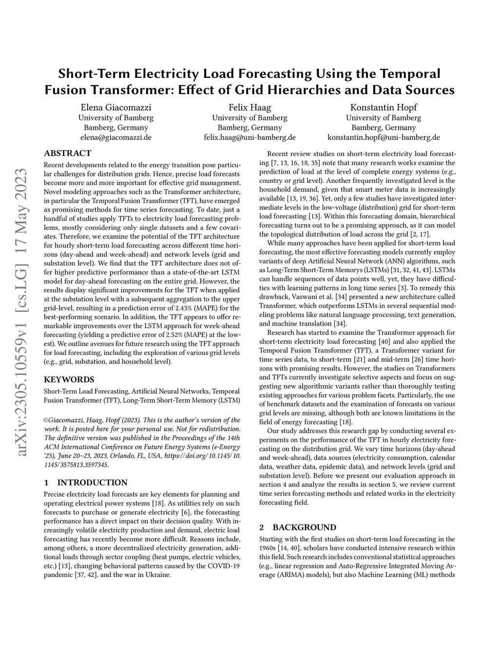 Recent developments related to the energy transition pose particular challenges for distribution grids. Hence, precise load forecasts become more and more important for effective grid management. Novel modeling approaches such as the Transformer architecture, in particular the Temporal Fusion Transformer (TFT), have emerged as promising methods for time series forecasting. To date, just a handful of studies apply TFTs to electricity load forecasting problems, mostly considering only single datasets and a few covariates. Therefore, we examine the potential of the TFT architecture for hourly short-term load forecasting across different time horizons (day-ahead and week-ahead) and network levels (grid and substation level). We find that the TFT architecture does not offer higher predictive performance than a state-of-the-art LSTM model for day-ahead forecasting on the entire grid. However, the results display significant improvements for the TFT when applied at the substation level with a subsequent aggregation to the upper grid-level, resulting in a prediction error of 2.43% (MAPE) for the best-performing scenario. In addition, the TFT appears to offer remarkable improvements over the LSTM approach for week-ahead forecasting (yielding a predictive error of 2.52% (MAPE) at the lowest). We outline avenues for future research using the TFT approach for load forecasting, including the exploration of various grid levels (e.g., grid, substation, and household level).