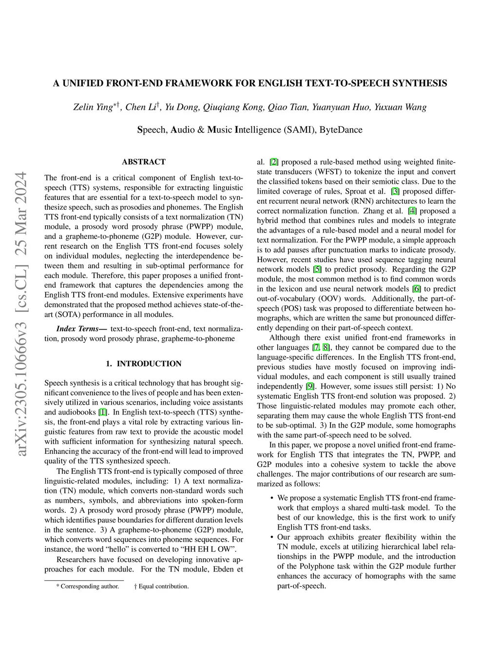 A unified front-end framework for English text-to-speech synthesis
