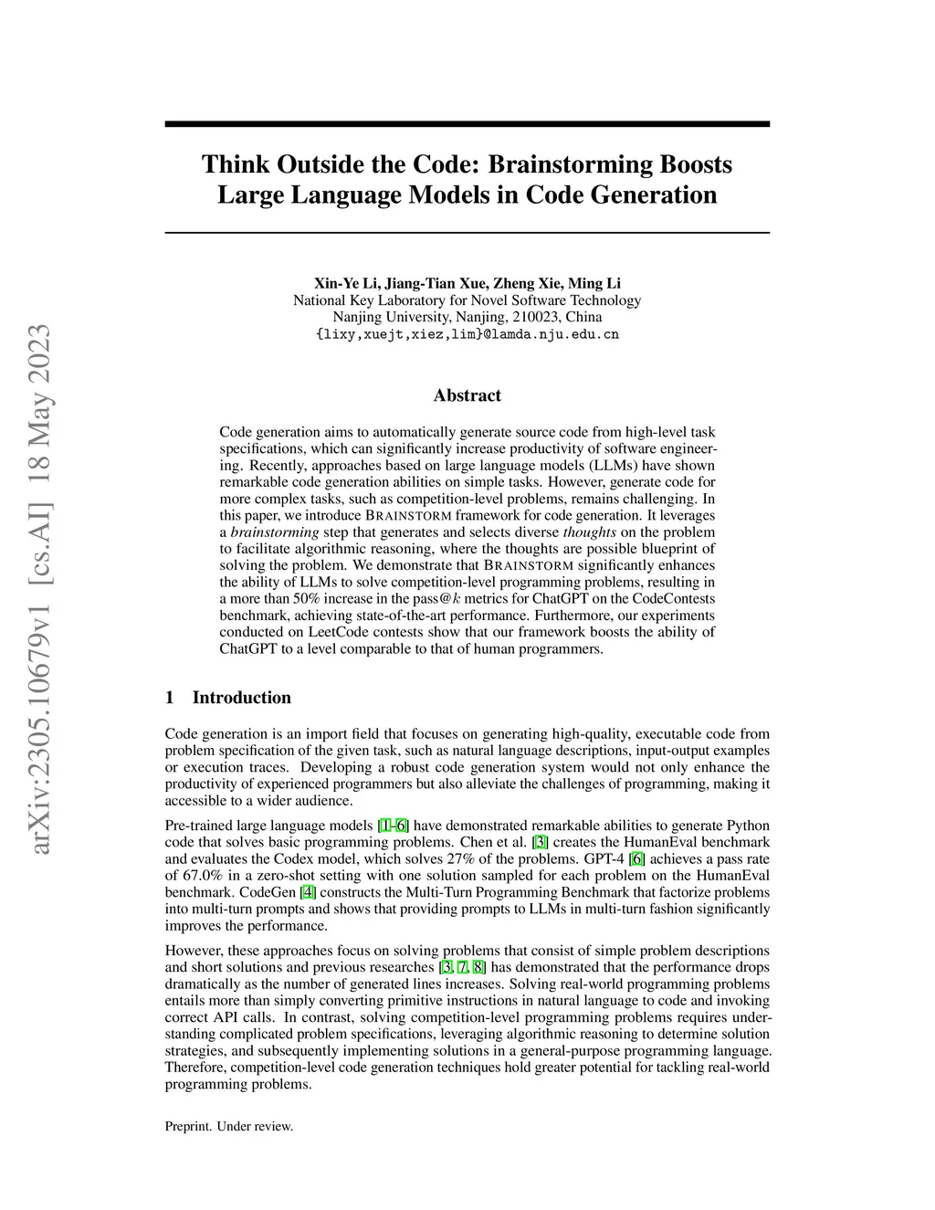 Think Outside the Code: Brainstorming Boosts Large Language Models in