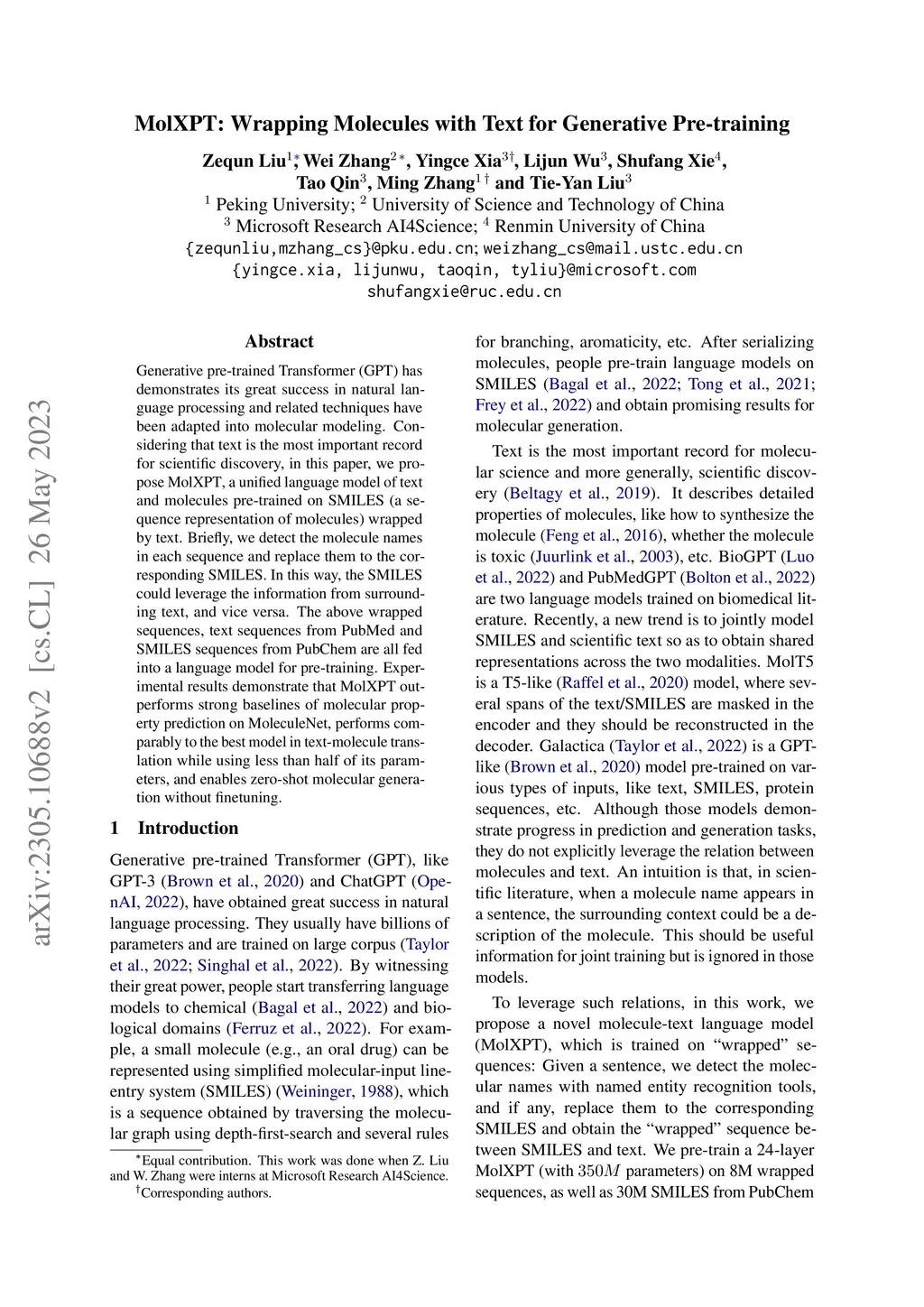 MolXPT: Wrapping Molecules with Text for Generative Pre-training