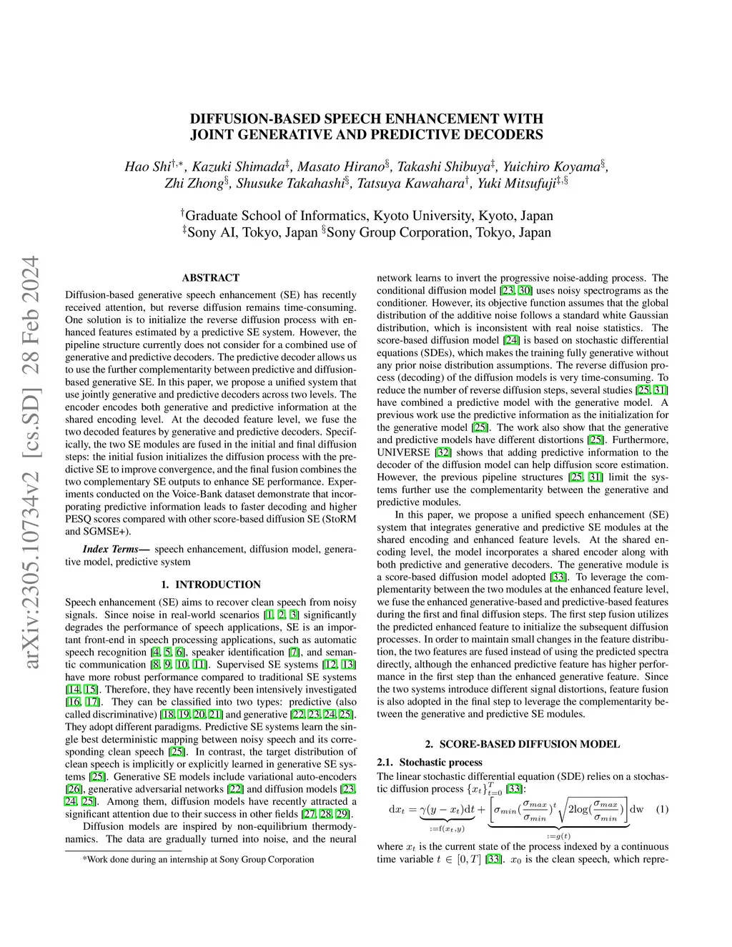 Diffusion-Based Speech Enhancement with Joint Generative and Predictive