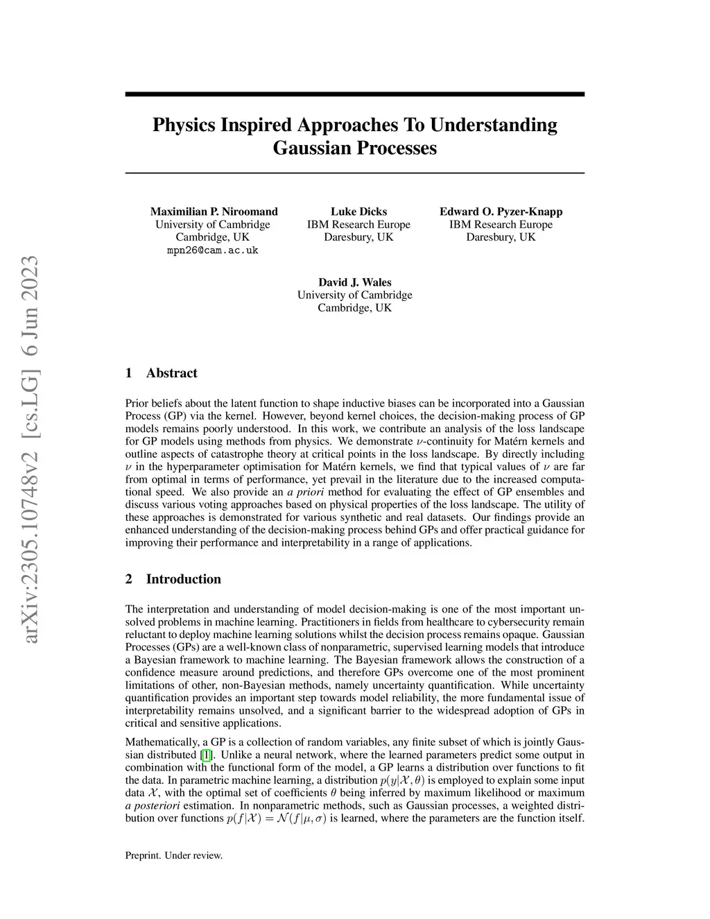 Prior beliefs about the latent function to shape inductive biases can be incorporated into a Gaussian Process (GP) via the kernel. However, beyond kernel choices, the decision-making process of GP models remains poorly understood. In this work, we contribute an analysis of the loss landscape for GP models using methods from physics. We demonstrate -continuity for Matern kernels and outline aspects of catastrophe theory at critical points in the loss landscape. By directly including in the hyperparameter optimisation for Matern kernels, we find that typical values of are far from optimal in terms of performance, yet prevail in the literature due to the increased computational speed. We also provide an a priori method for evaluating the effect of GP ensembles and discuss various voting approaches based on physical properties of the loss landscape. The utility of these approaches is demonstrated for various synthetic and real datasets. Our findings provide an enhanced understanding of the decision-making process behind GPs and offer practical guidance for improving their performance and interpretability in a range of applications.