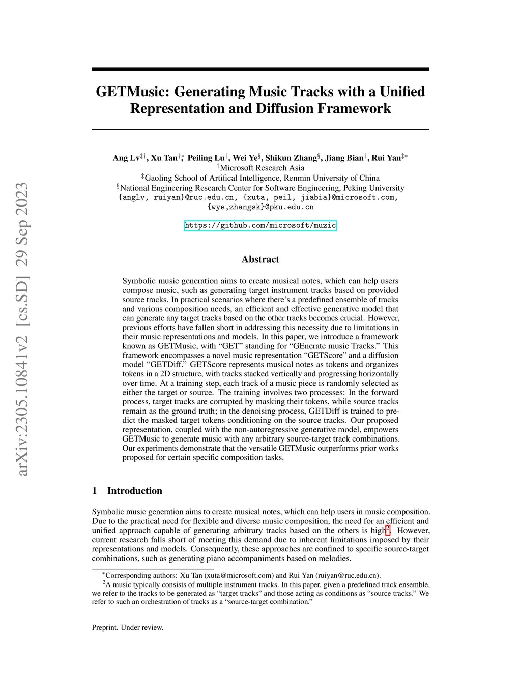GETMusic: Generating Any Music Tracks with a Unified Representation and