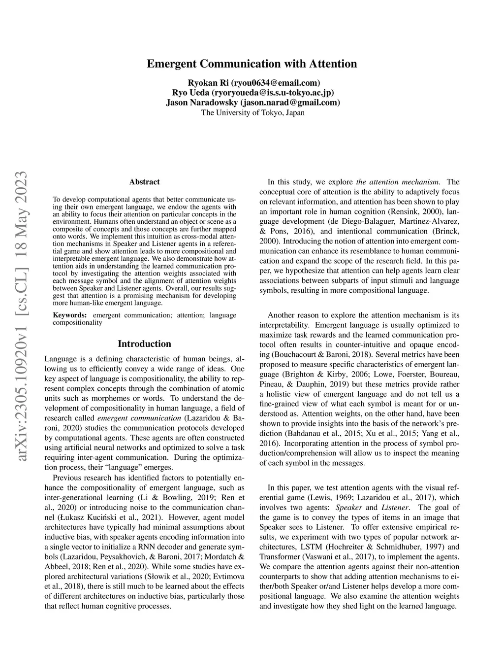 Emergent Communication with Attention