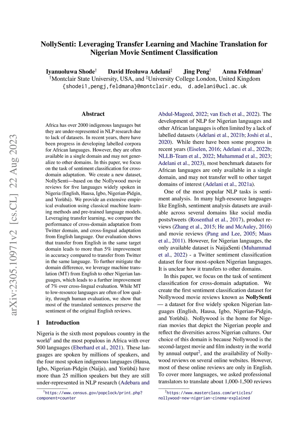 NollySenti: Leveraging Transfer Learning and Machine Translation for