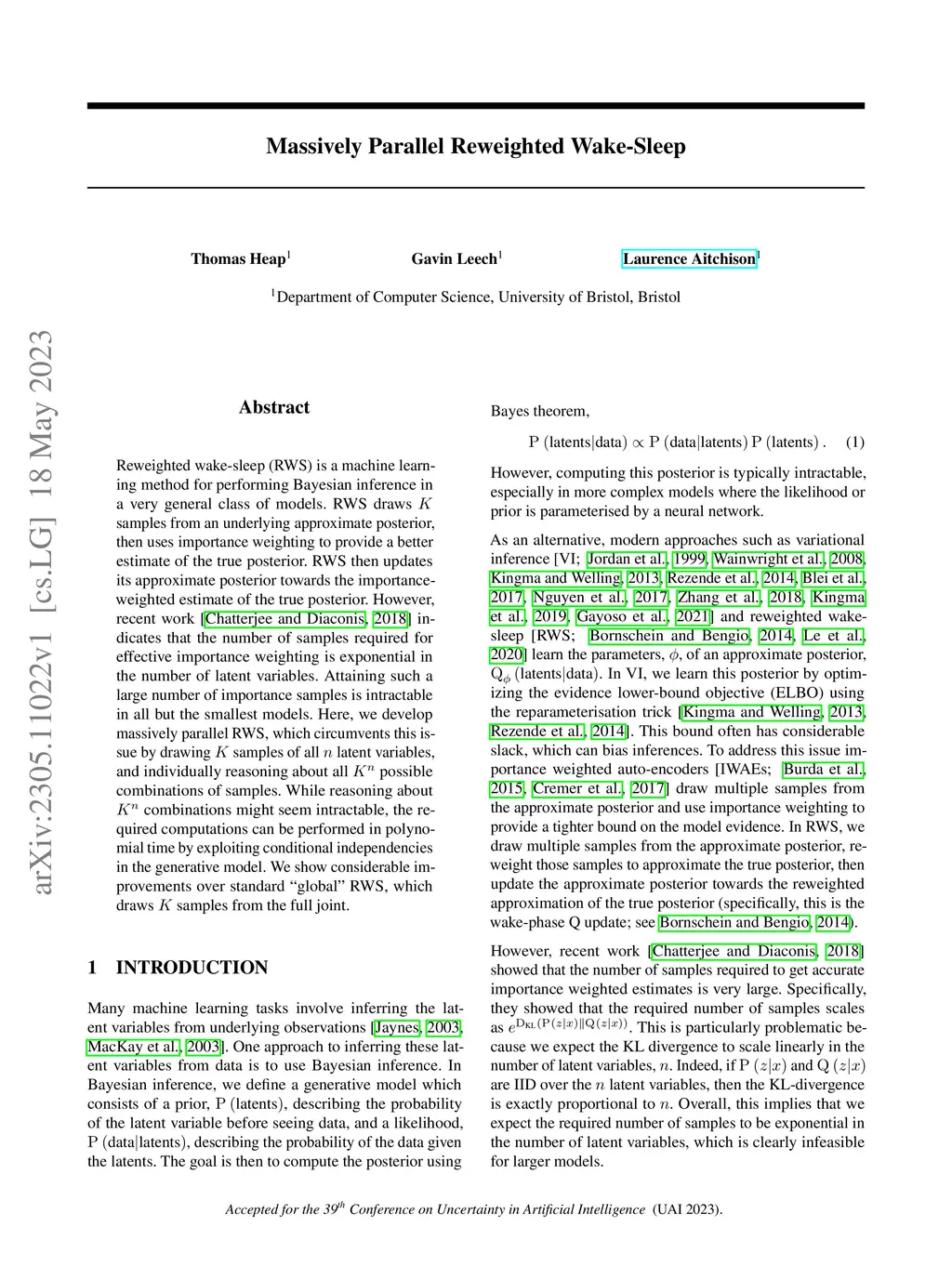 Reweighted wake-sleep (RWS) is a machine learning method for performing Bayesian inference in a very general class of models. RWS draws samples from an underlying approximate posterior, then uses importance weighting to provide a better estimate of the true posterior. RWS then updates its approximate posterior towards the importance-weighted estimate of the true posterior. However, recent work [Chattergee and Diaconis, 2018] indicates that the number of samples required for effective importance weighting is exponential in the number of latent variables. Attaining such a large number of importance samples is intractable in all but the smallest models. Here, we develop massively parallel RWS, which circumvents this issue by drawing samples of all latent variables, and individually reasoning about all possible combinations of samples. While reasoning about combinations might seem intractable, the required computations can be performed in polynomial time by exploiting conditional independencies in the generative model. We show considerable improvements over standard "global" RWS, which draws samples from the full joint.