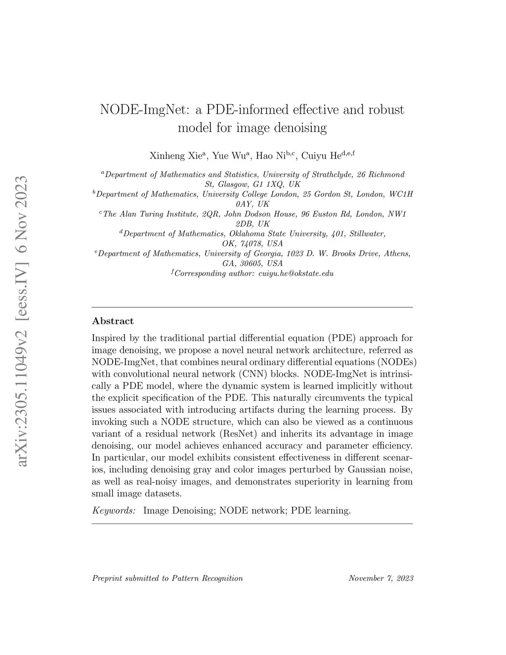 NODE-ImgNet: a PDE-informed effective and robust model for image