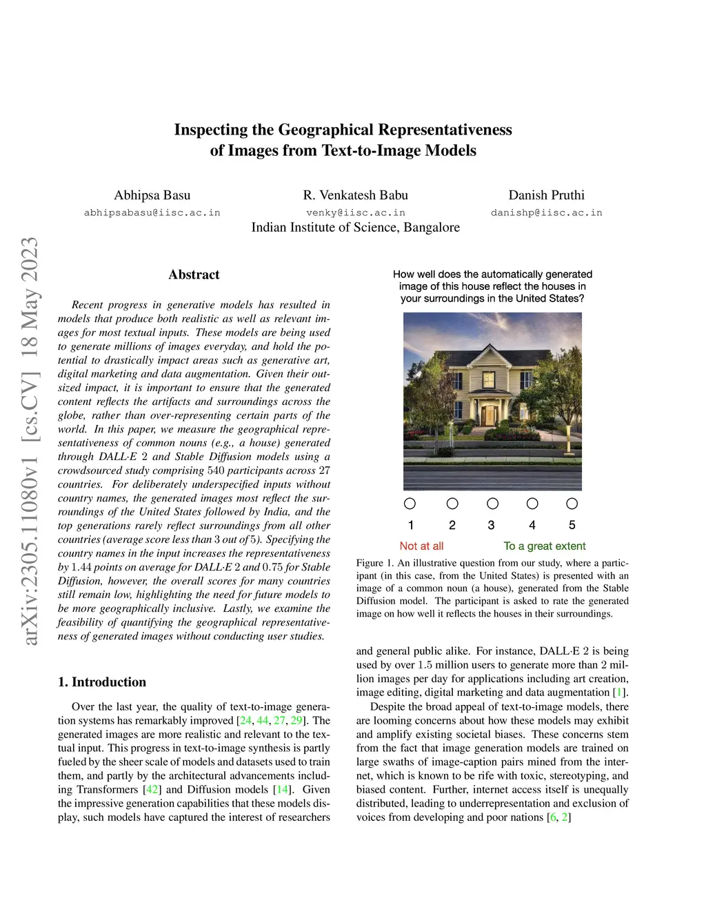 Recent progress in generative models has resulted in models that produce both realistic as well as relevant images for most textual inputs. These models are being used to generate millions of images everyday, and hold the potential to drastically impact areas such as generative art, digital marketing and data augmentation. Given their outsized impact, it is important to ensure that the generated content reflects the artifacts and surroundings across the globe, rather than over-representing certain parts of the world. In this paper, we measure the geographical representativeness of common nouns (e.g., a house) generated through DALL.E 2 and Stable Diffusion models using a crowdsourced study comprising 540 participants across 27 countries. For deliberately underspecified inputs without country names, the generated images most reflect the surroundings of the United States followed by India, and the top generations rarely reflect surroundings from all other countries (average score less than 3 out of 5). Specifying the country names in the input increases the representativeness by 1.44 points on average for DALL.E 2 and 0.75 for Stable Diffusion, however, the overall scores for many countries still remain low, highlighting the need for future models to be more geographically inclusive. Lastly, we examine the feasibility of quantifying the geographical representativeness of generated images without conducting user studies.