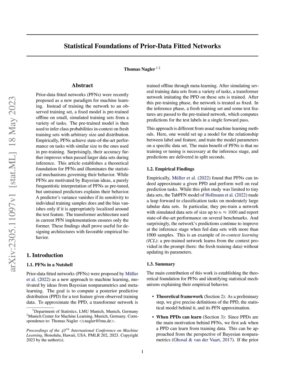 Prior-data fitted networks (PFNs) were recently proposed as a new paradigm for machine learning. Instead of training the network to an observed training set, a fixed model is pre-trained offline on small, simulated training sets from a variety of tasks. The pre-trained model is then used to infer class probabilities in-context on fresh training sets with arbitrary size and distribution. Empirically, PFNs achieve state-of-the-art performance on tasks with similar size to the ones used in pre-training. Surprisingly, their accuracy further improves when passed larger data sets during inference. This article establishes a theoretical foundation for PFNs and illuminates the statistical mechanisms governing their behavior. While PFNs are motivated by Bayesian ideas, a purely frequentistic interpretation of PFNs as pre-tuned, but untrained predictors explains their behavior. A predictor's variance vanishes if its sensitivity to individual training samples does and the bias vanishes only if it is appropriately localized around the test feature. The transformer architecture used in current PFN implementations ensures only the former. These findings shall prove useful for designing architectures with favorable empirical behavior.