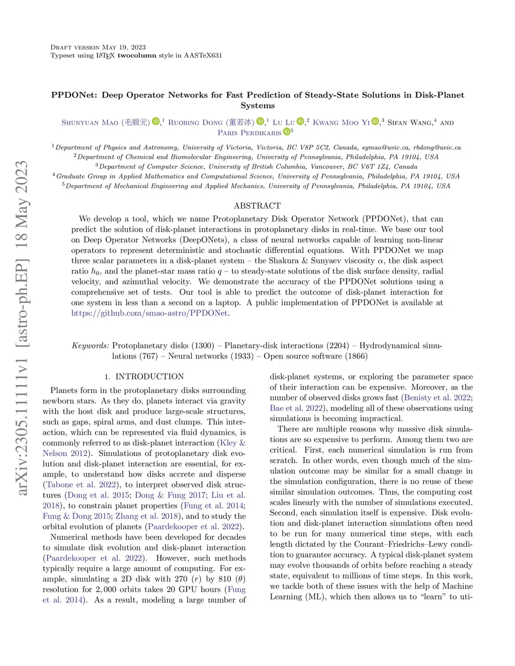 We develop a tool, which we name Protoplanetary Disk Operator Network (PPDONet), that can predict the solution of disk-planet interactions in protoplanetary disks in real-time. We base our tool on Deep Operator Networks (DeepONets), a class of neural networks capable of learning non-linear operators to represent deterministic and stochastic differential equations. With PPDONet we map three scalar parameters in a disk-planet system -- the Shakura \& Sunyaev viscosity , the disk aspect ratio , and the planet-star mass ratio -- to steady-state solutions of the disk surface density, radial velocity, and azimuthal velocity. We demonstrate the accuracy of the PPDONet solutions using a comprehensive set of tests. Our tool is able to predict the outcome of disk-planet interaction for one system in less than a second on a laptop. A public implementation of PPDONet is available at \url{https://github.com/smao-astro/PPDONet}.