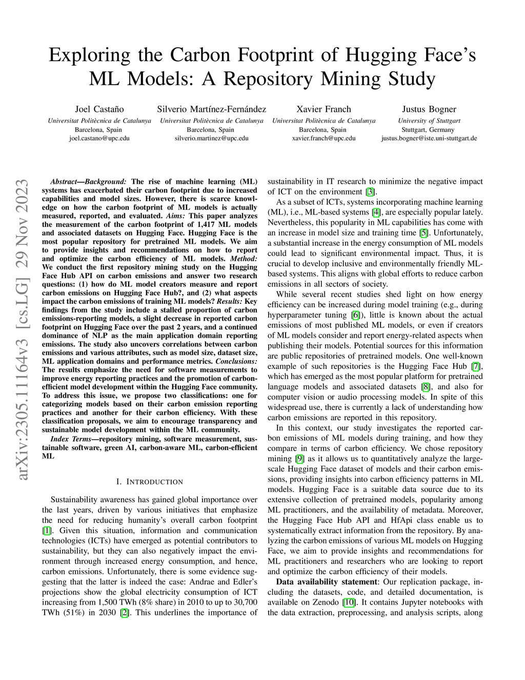 Exploring the Carbon Footprint of Hugging Face's ML Models: A Repository