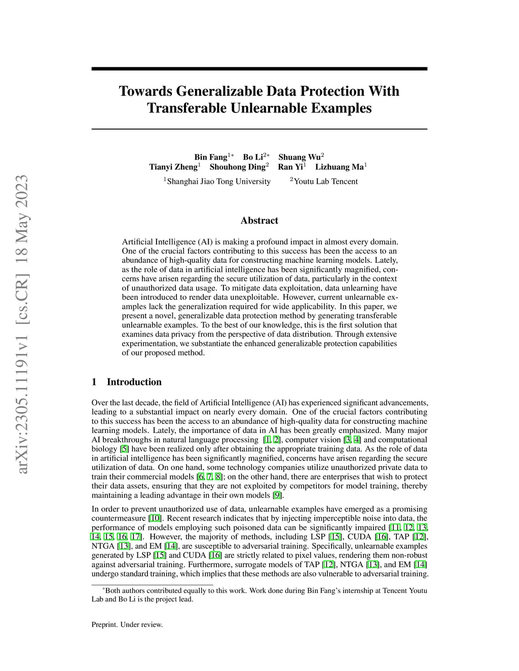 Artificial Intelligence (AI) is making a profound impact in almost every domain. One of the crucial factors contributing to this success has been the access to an abundance of high-quality data for constructing machine learning models. Lately, as the role of data in artificial intelligence has been significantly magnified, concerns have arisen regarding the secure utilization of data, particularly in the context of unauthorized data usage. To mitigate data exploitation, data unlearning have been introduced to render data unexploitable. However, current unlearnable examples lack the generalization required for wide applicability. In this paper, we present a novel, generalizable data protection method by generating transferable unlearnable examples. To the best of our knowledge, this is the first solution that examines data privacy from the perspective of data distribution. Through extensive experimentation, we substantiate the enhanced generalizable protection capabilities of our proposed method.
