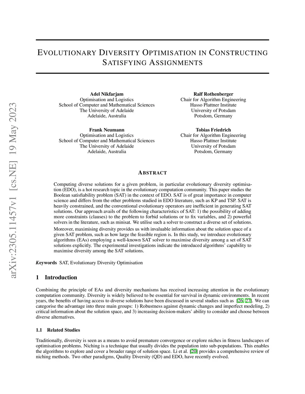 Evolutionary Diversity Optimisation in Constructing Satisfying