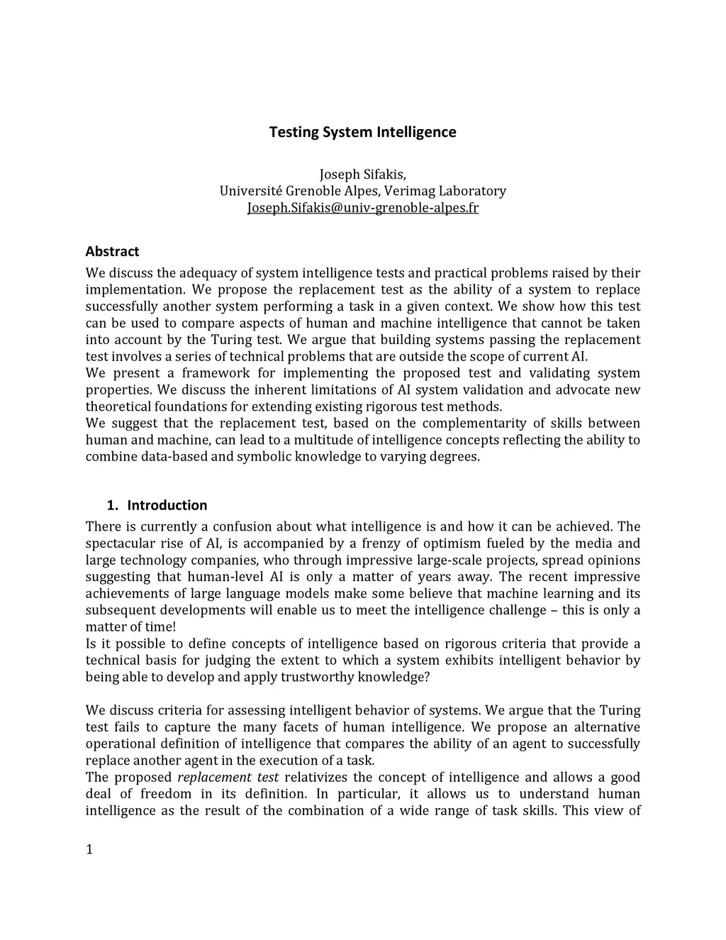 We discuss the adequacy of tests for intelligent systems and practical problems raised by their implementation. We propose the replacement test as the ability of a system to replace successfully another system performing a task in a given context. We show how it can characterize salient aspects of human intelligence that cannot be taken into account by the Turing test. We argue that building intelligent systems passing the replacement test involves a series of technical problems that are outside the scope of current AI. We present a framework for implementing the proposed test and validating the properties of the intelligent systems. We discuss the inherent limitations of intelligent system validation and advocate new theoretical foundations for extending existing rigorous test methods. We suggest that the replacement test, based on the complementarity of skills between human and machine, can lead to a multitude of intelligence concepts reflecting the ability to combine data-based and symbolic knowledge to varying degrees.