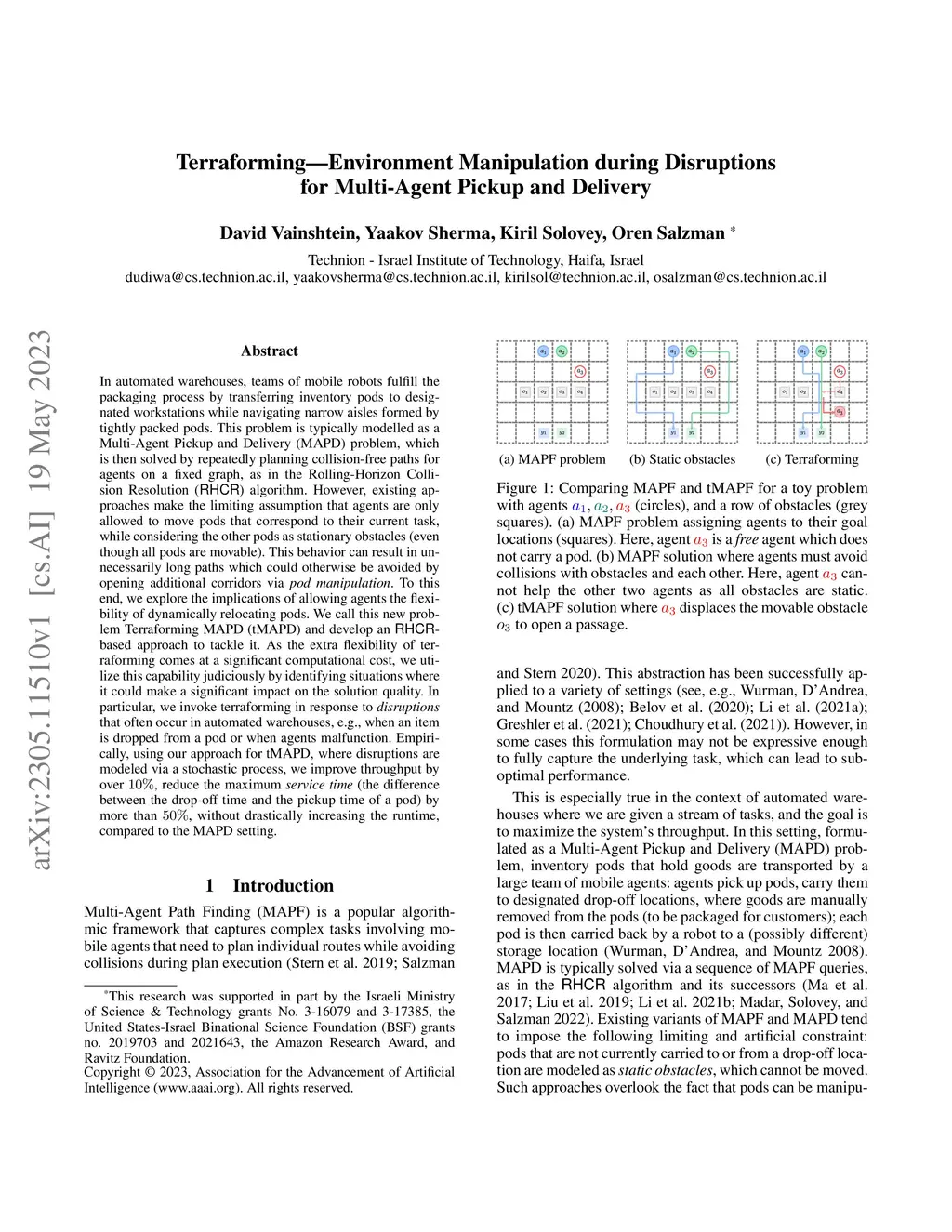 In automated warehouses, teams of mobile robots fulfill the packaging process by transferring inventory pods to designated workstations while navigating narrow aisles formed by tightly packed pods. This problem is typically modeled as a Multi-Agent Pickup and Delivery (MAPD) problem, which is then solved by repeatedly planning collision-free paths for agents on a fixed graph, as in the Rolling-Horizon Collision Resolution (RHCR) algorithm. However, existing approaches make the limiting assumption that agents are only allowed to move pods that correspond to their current task, while considering the other pods as stationary obstacles (even though all pods are movable). This behavior can result in unnecessarily long paths which could otherwise be avoided by opening additional corridors via pod manipulation. To this end, we explore the implications of allowing agents the flexibility of dynamically relocating pods. We call this new problem Terraforming MAPD (tMAPD) and develop an RHCR-based approach to tackle it. As the extra flexibility of terraforming comes at a significant computational cost, we utilize this capability judiciously by identifying situations where it could make a significant impact on the solution quality. In particular, we invoke terraforming in response to disruptions that often occur in automated warehouses, e.g., when an item is dropped from a pod or when agents malfunction. Empirically, using our approach for tMAPD, where disruptions are modeled via a stochastic process, we improve throughput by over 10%, reduce the maximum service time (the difference between the drop-off time and the pickup time of a pod) by more than 50%, without drastically increasing the runtime, compared to the MAPD setting.
