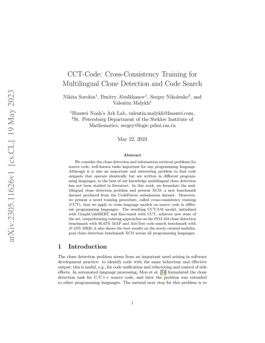 CCT-Code: Cross-Consistency Training for Multilingual Clone Detection