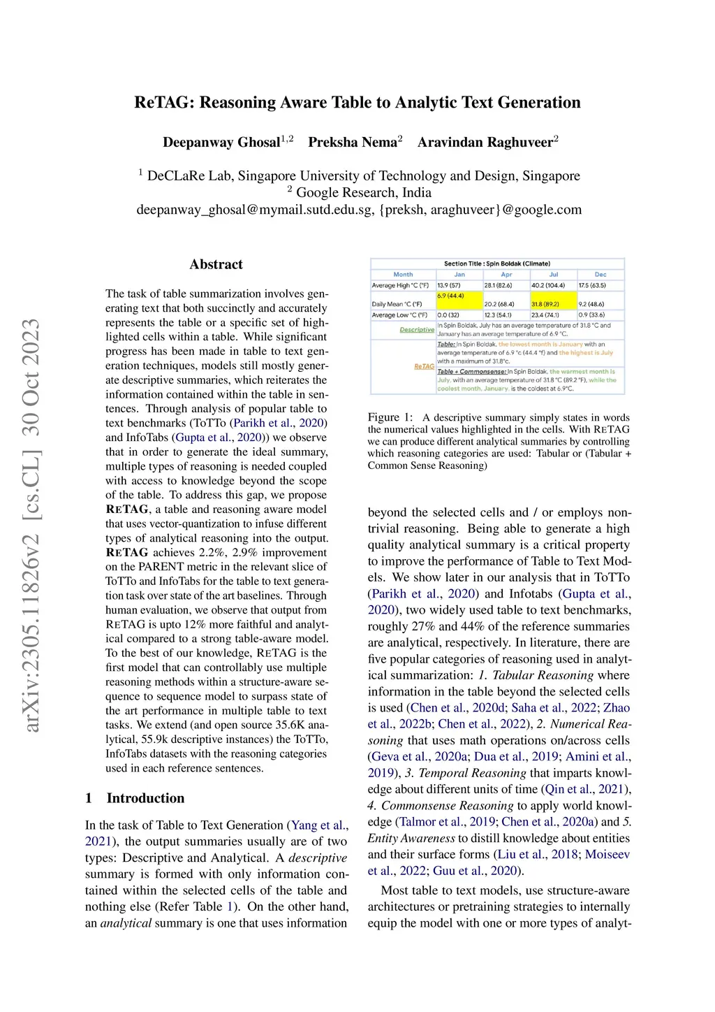 ReTAG: Reasoning Aware Table to Analytic Text Generation