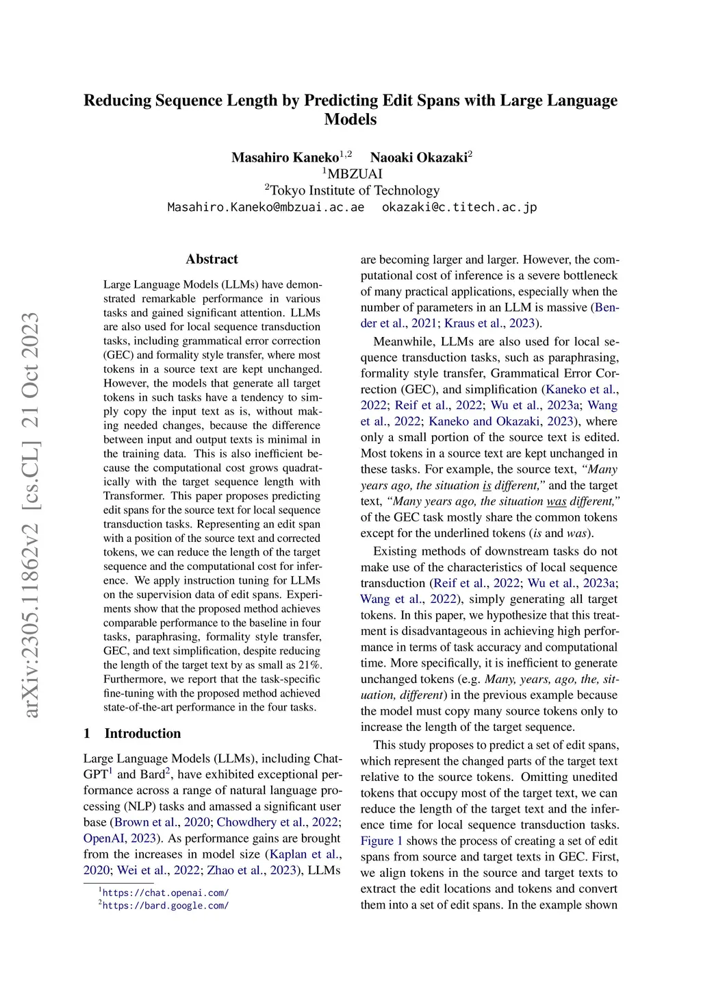 Reducing Sequence Length by Predicting Edit Operations with Large