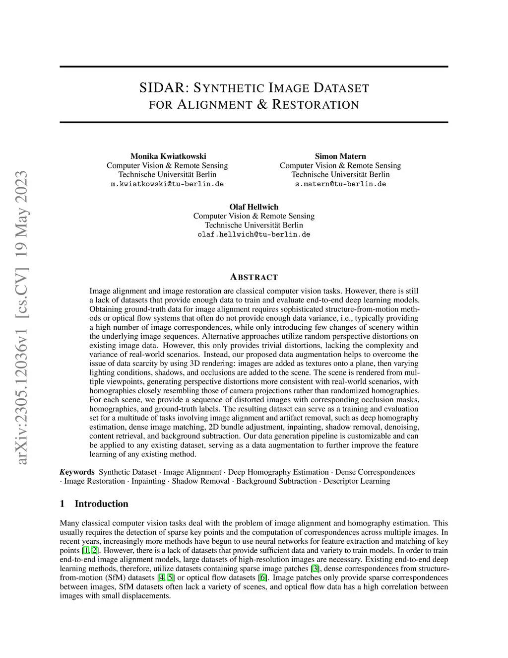 SIDAR: Synthetic Image Dataset for Alignment & Restoration