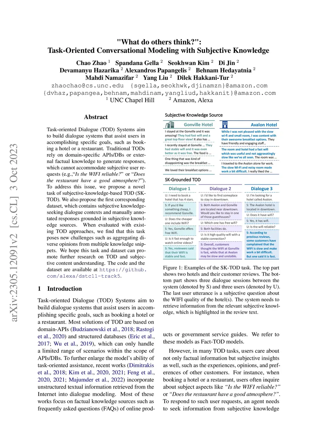 Task-oriented Dialogue (TOD) Systems aim to build dialogue systems that assist users in accomplishing specific goals, such as booking a hotel or a restaurant. Traditional TODs rely on domain-specific APIs/DBs or external factual knowledge to generate responses, which cannot accommodate subjective user requests (e.g., "Is the WIFI reliable?" or "Does the restaurant have a good atmosphere?"). To address this issue, we propose a novel task of subjective-knowledge-based TOD (SK-TOD). We also propose the first corresponding dataset, which contains subjective knowledge-seeking dialogue contexts and manually annotated responses grounded in subjective knowledge sources. When evaluated with existing TOD approaches, we find that this task poses new challenges such as aggregating diverse opinions from multiple knowledge snippets. We hope this task and dataset can promote further research on TOD and subjective content understanding. The code and the dataset are available at https://github.com/alexa/dstc11-track5.