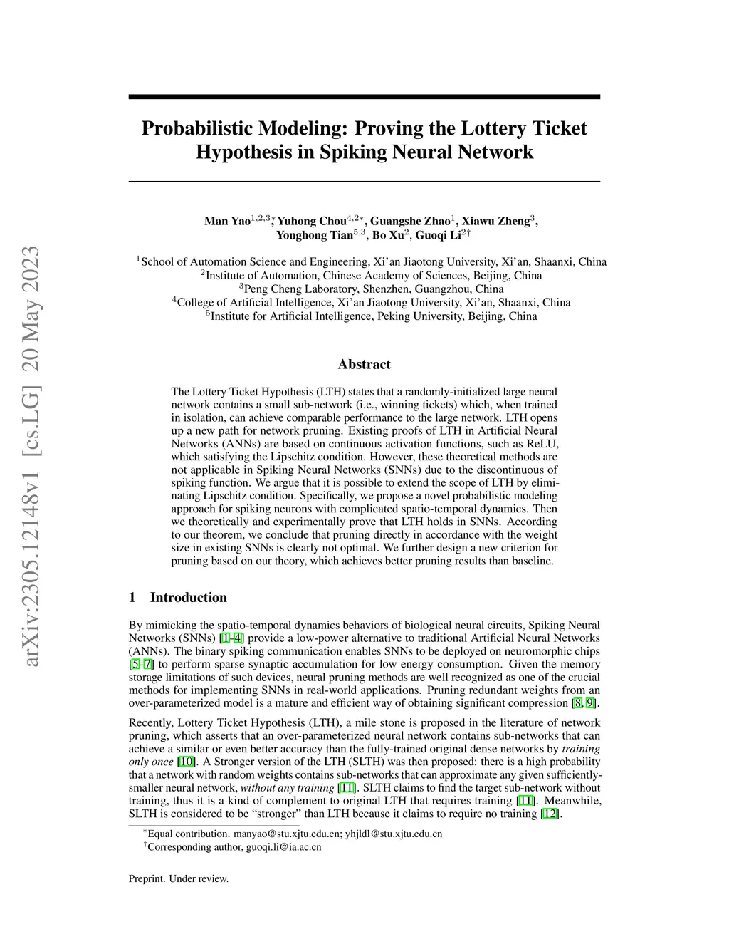 Probabilistic Modeling: Proving the Lottery Ticket Hypothesis in Spiking