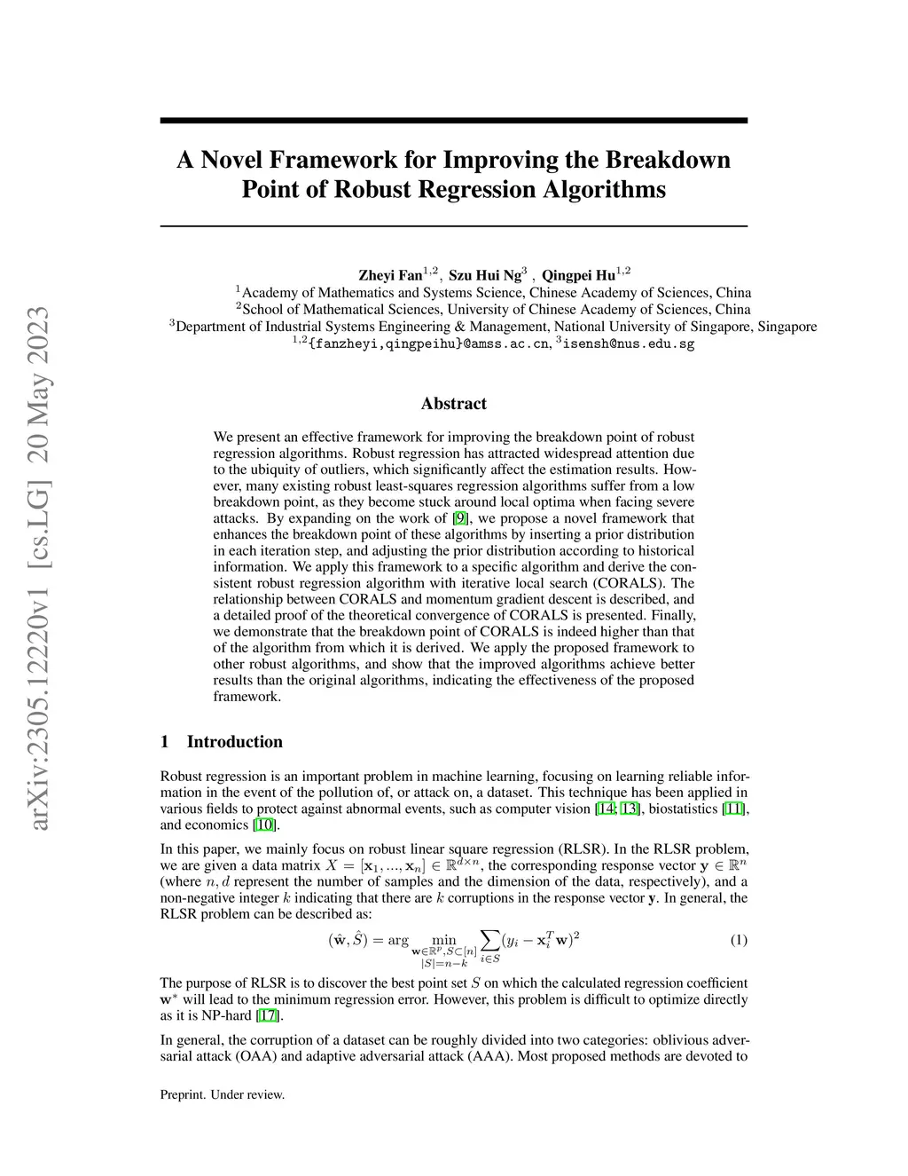 A Novel Framework for Improving the Breakdown Point of Robust Regression