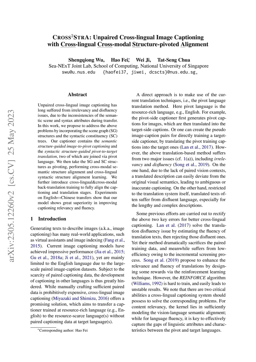 Cross2StrA: Unpaired Cross-lingual Image Captioning with Cross-lingual