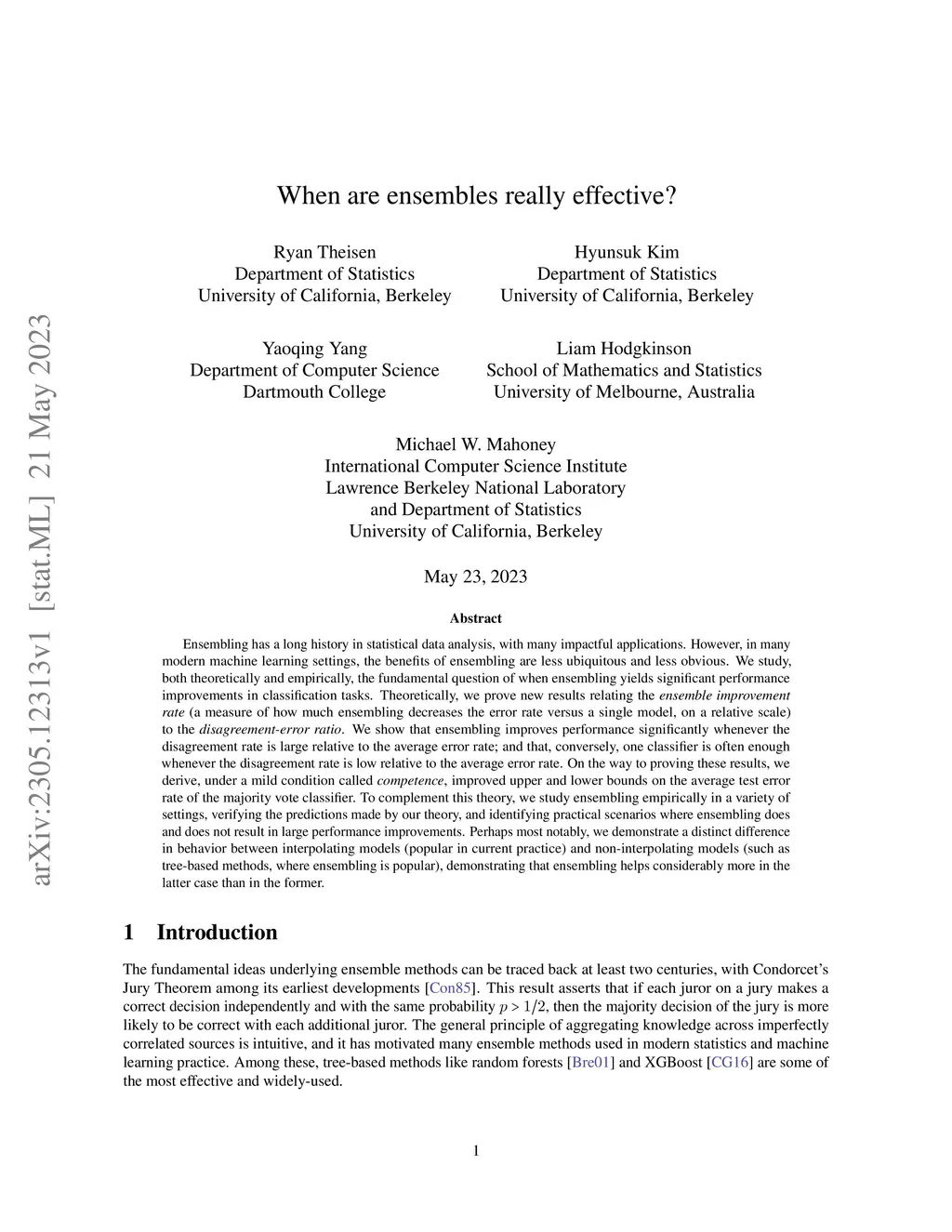 Ensembling has a long history in statistical data analysis, with many impactful applications. However, in many modern machine learning settings, the benefits of ensembling are less ubiquitous and less obvious. We study, both theoretically and empirically, the fundamental question of when ensembling yields significant performance improvements in classification tasks. Theoretically, we prove new results relating the \emph{ensemble improvement rate} (a measure of how much ensembling decreases the error rate versus a single model, on a relative scale) to the \emph{disagreement-error ratio}. We show that ensembling improves performance significantly whenever the disagreement rate is large relative to the average error rate; and that, conversely, one classifier is often enough whenever the disagreement rate is low relative to the average error rate. On the way to proving these results, we derive, under a mild condition called \emph{competence}, improved upper and lower bounds on the average test error rate of the majority vote classifier. To complement this theory, we study ensembling empirically in a variety of settings, verifying the predictions made by our theory, and identifying practical scenarios where ensembling does and does not result in large performance improvements. Perhaps most notably, we demonstrate a distinct difference in behavior between interpolating models (popular in current practice) and non-interpolating models (such as tree-based methods, where ensembling is popular), demonstrating that ensembling helps considerably more in the latter case than in the former.
