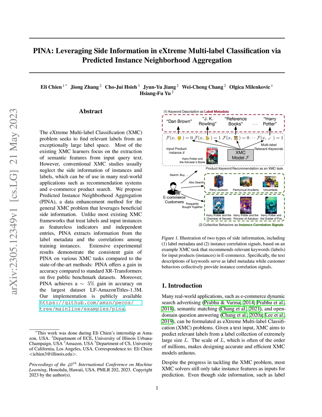 PINA: Leveraging Side Information in eXtreme Multi-label Classification