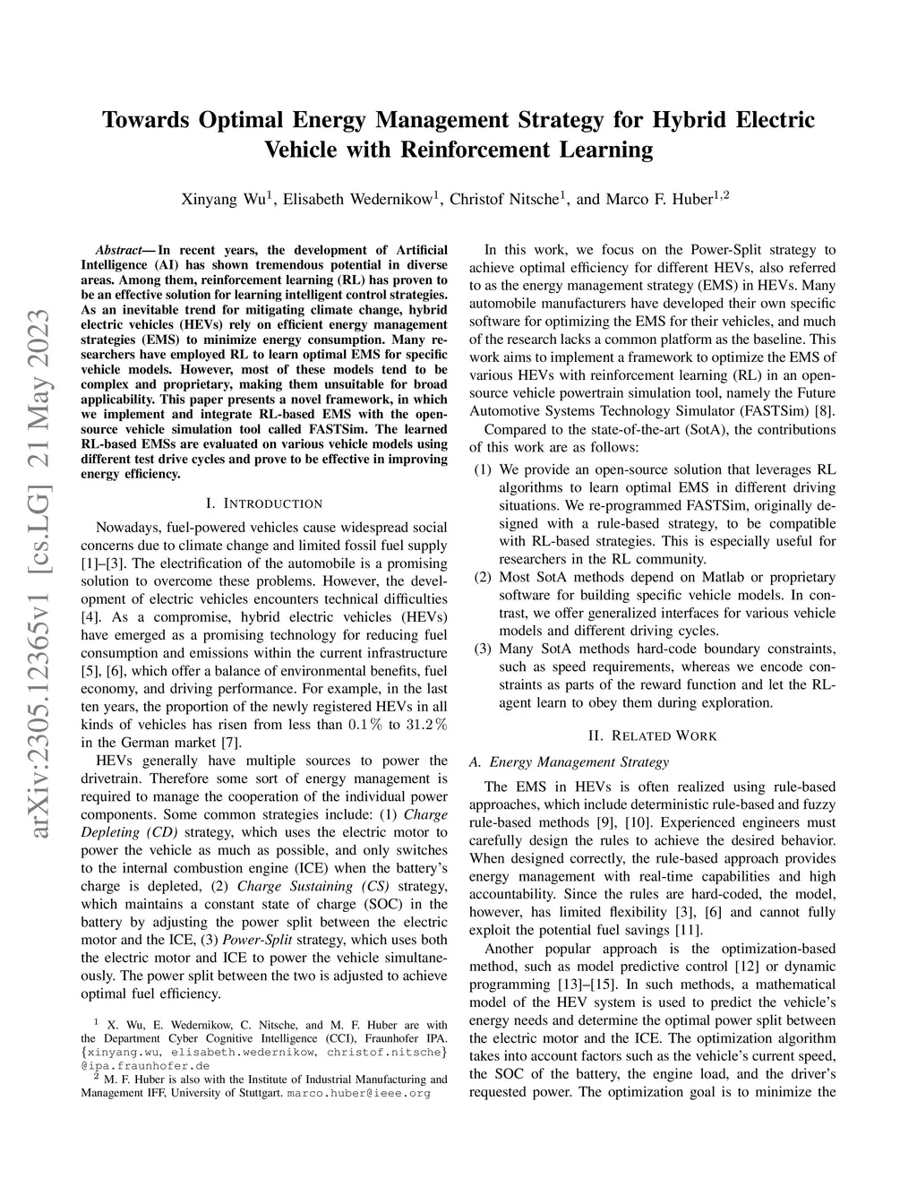 In recent years, the development of Artificial Intelligence (AI) has shown tremendous potential in diverse areas. Among them, reinforcement learning (RL) has proven to be an effective solution for learning intelligent control strategies. As an inevitable trend for mitigating climate change, hybrid electric vehicles (HEVs) rely on efficient energy management strategies (EMS) to minimize energy consumption. Many researchers have employed RL to learn optimal EMS for specific vehicle models. However, most of these models tend to be complex and proprietary, making them unsuitable for broad applicability. This paper presents a novel framework, in which we implement and integrate RL-based EMS with the open-source vehicle simulation tool called FASTSim. The learned RL-based EMSs are evaluated on various vehicle models using different test drive cycles and prove to be effective in improving energy efficiency.
