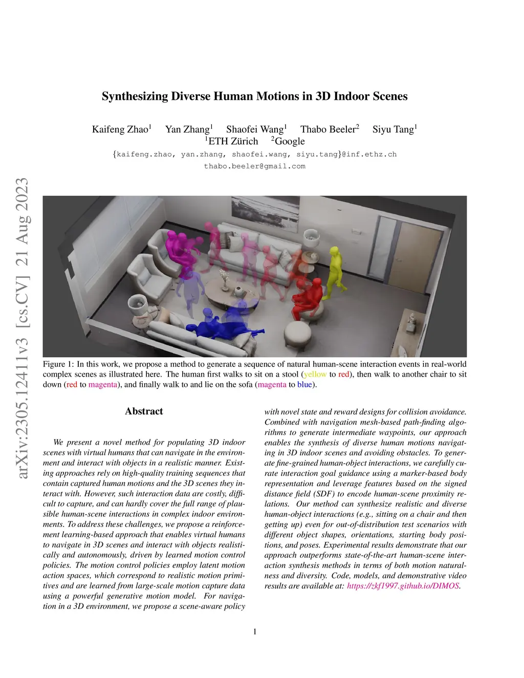 Synthesizing Diverse Human Motions in 3D Indoor Scenes
