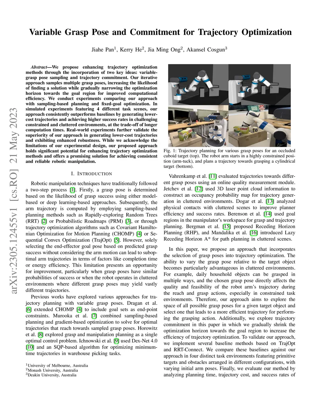 Variable Grasp Pose and Commitment for Trajectory Optimization