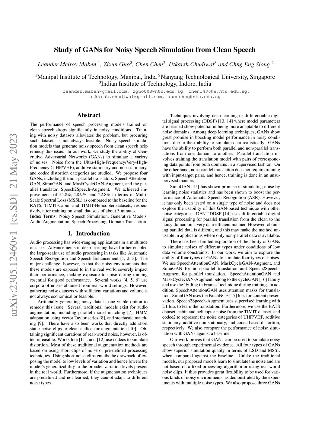 Study of GANs for Noisy Speech Simulation from Clean Speech