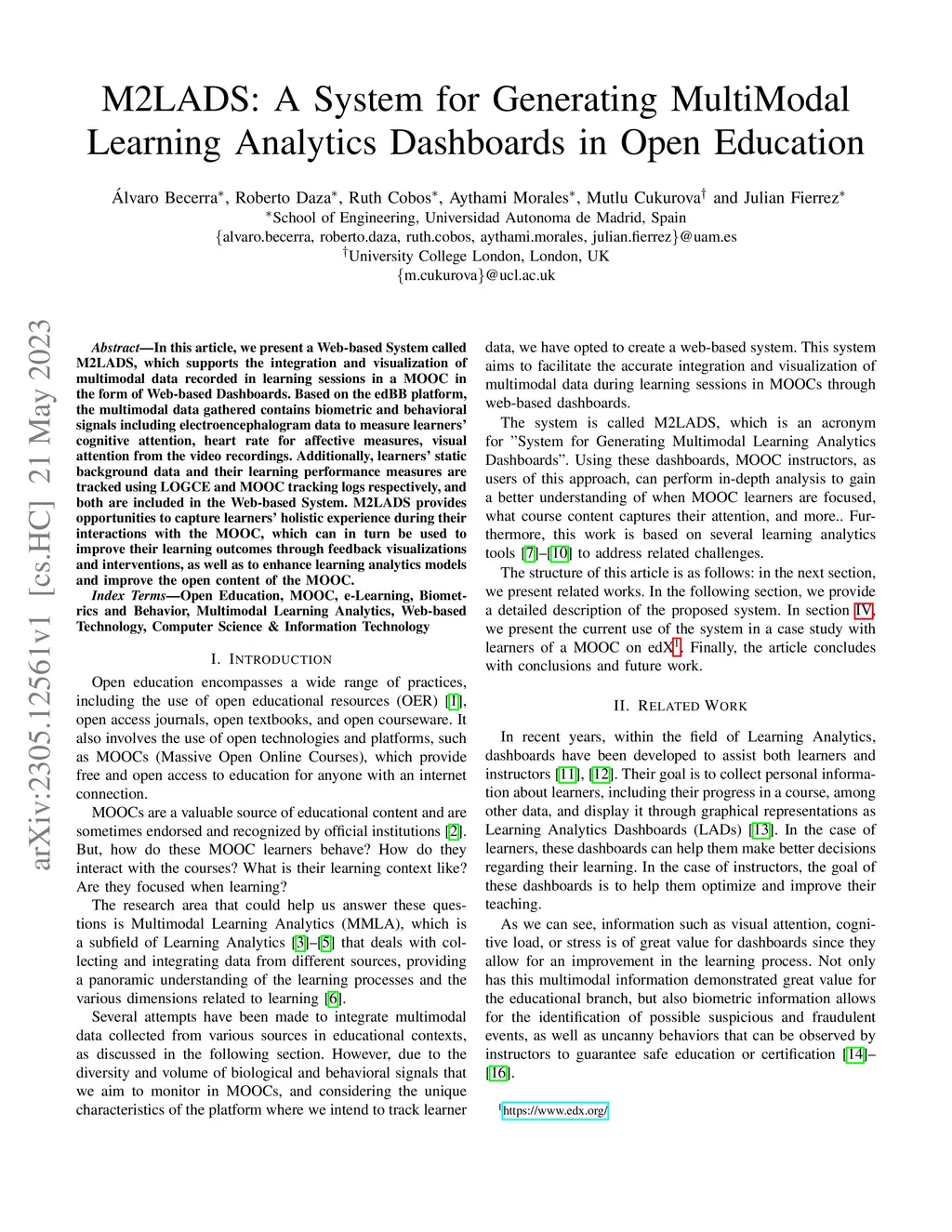 M2LADS: A System for Generating MultiModal Learning Analytics Dashboards
