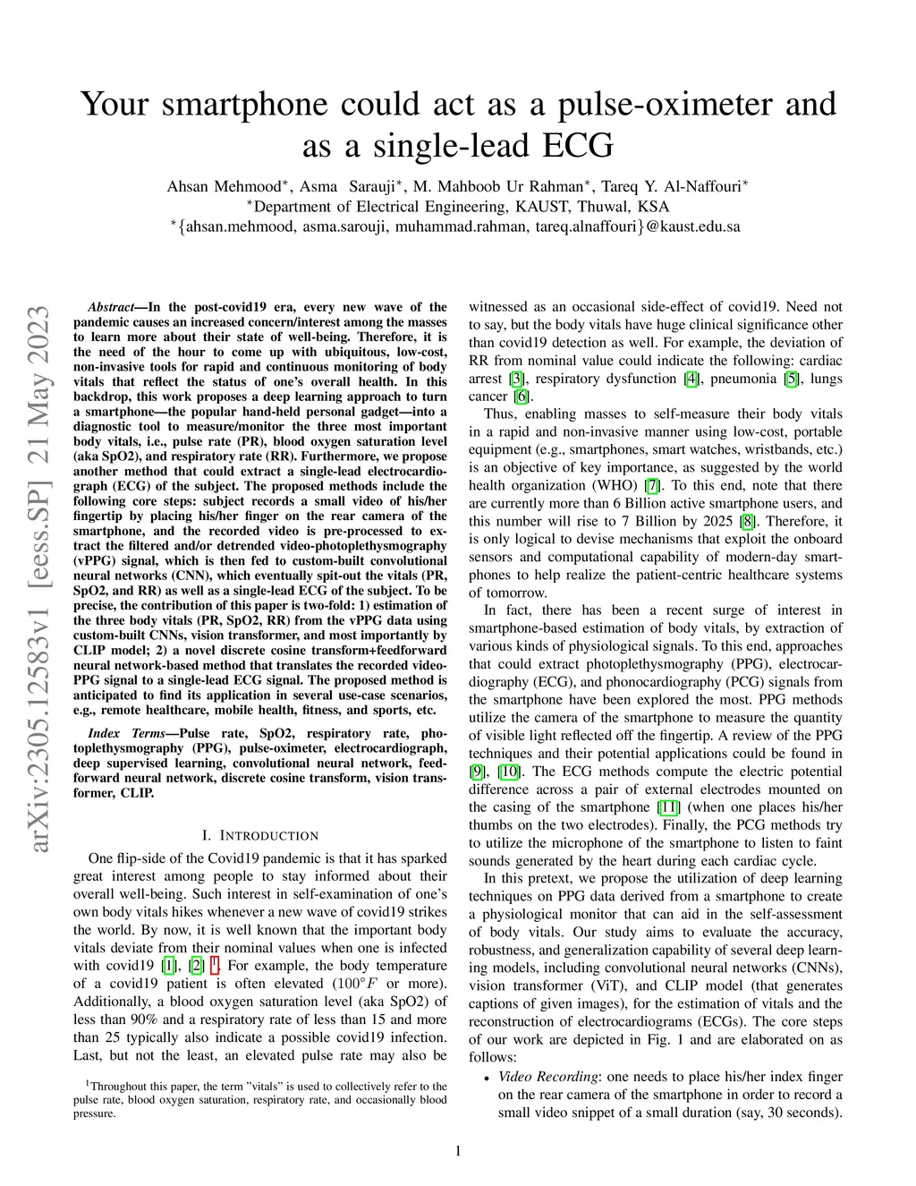 Your smartphone could act as a pulse-oximeter and as a single-lead ECG