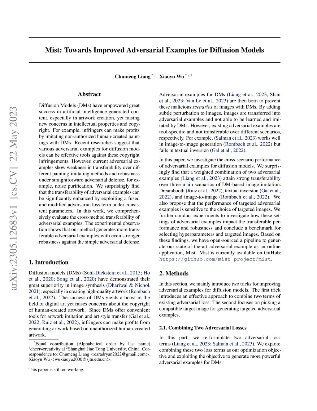 Mist: Towards Improved Adversarial Examples for Diffusion Models