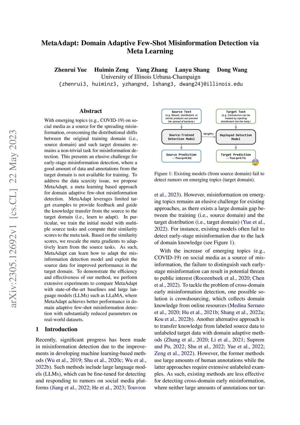 MetaAdapt: Domain Adaptive Few-Shot Misinformation Detection via Meta
