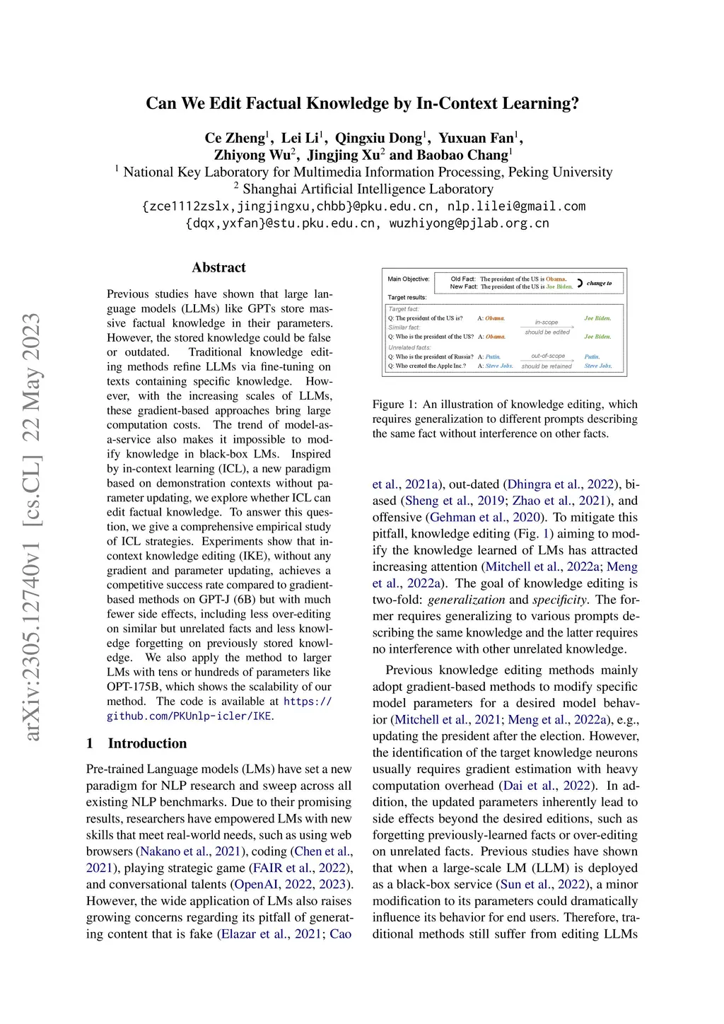 Can We Edit Factual Knowledge by In-Context Learning?
