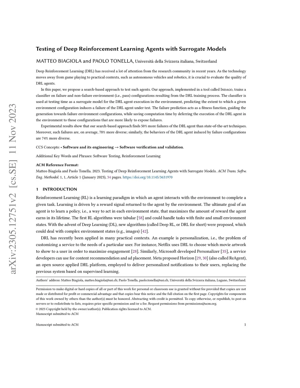 Testing of Deep Reinforcement Learning Agents with Surrogate Models