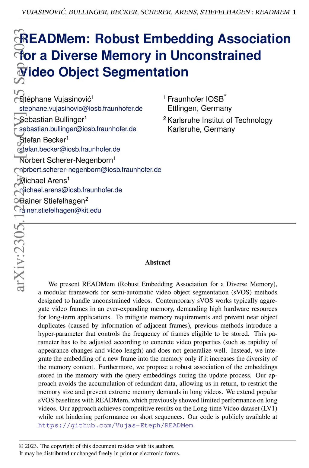 We present READMem (Robust Embedding Association for a Diverse Memory), a modular framework for semi-automatic video object segmentation (sVOS) methods designed to handle unconstrained videos. Contemporary sVOS works typically aggregate video frames in an ever-expanding memory, demanding high hardware resources for long-term applications. To mitigate memory requirements and prevent near object duplicates (caused by information of adjacent frames), previous methods introduce a hyper-parameter that controls the frequency of frames eligible to be stored. This parameter has to be adjusted according to concrete video properties (such as rapidity of appearance changes and video length) and does not generalize well. Instead, we integrate the embedding of a new frame into the memory only if it increases the diversity of the memory content. Furthermore, we propose a robust association of the embeddings stored in the memory with query embeddings during the update process. Our approach avoids the accumulation of redundant data, allowing us in return, to restrict the memory size and prevent extreme memory demands in long videos. We extend popular sVOS baselines with READMem, which previously showed limited performance on long videos. Our approach achieves competitive results on the Long-time Video dataset (LV1) while not hindering performance on short sequences. Our code is publicly available.