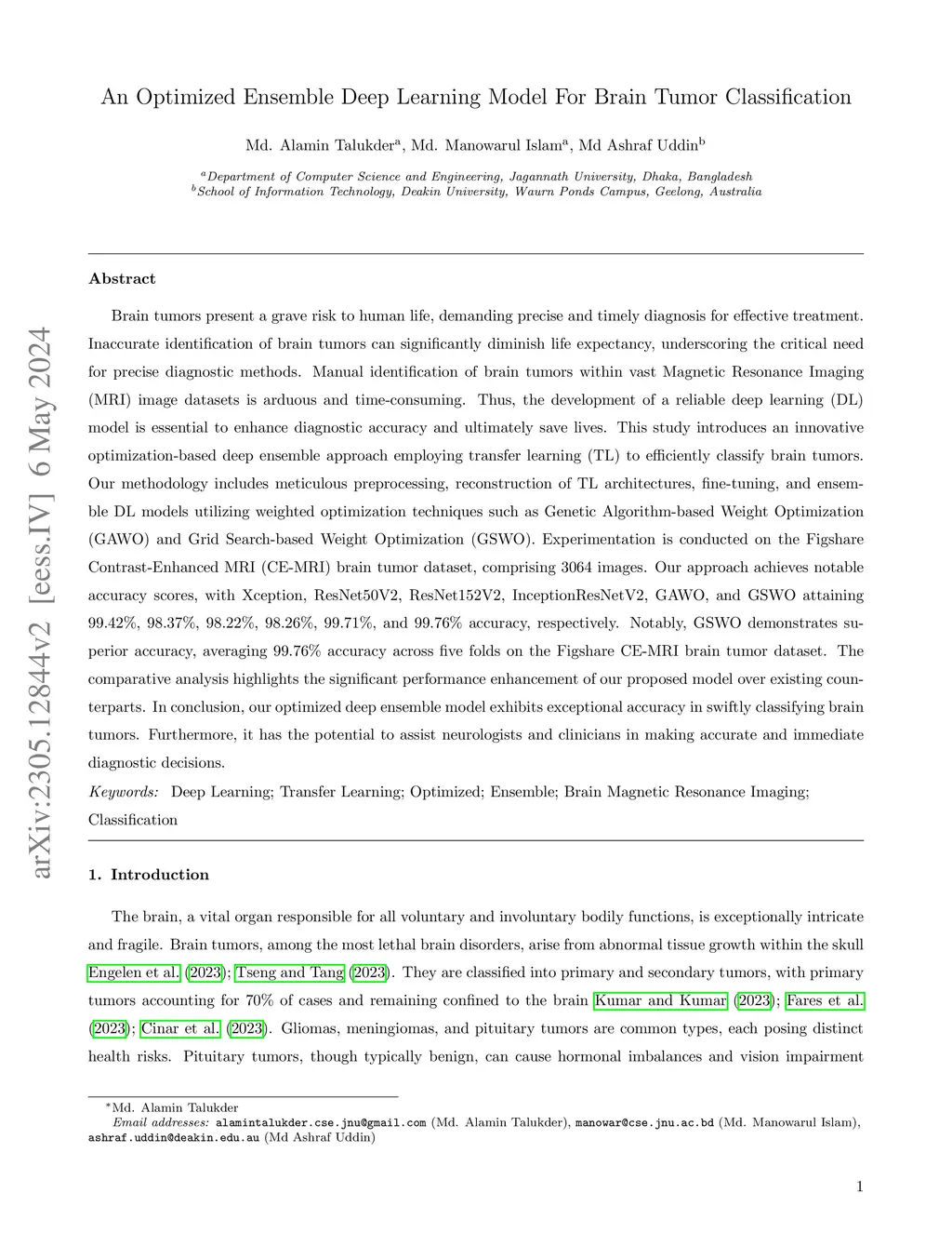 An Optimized Ensemble Deep Learning Model For Brain Tumor Classification